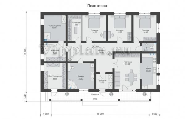| Размеры дома: | 18.56м×13.97м |